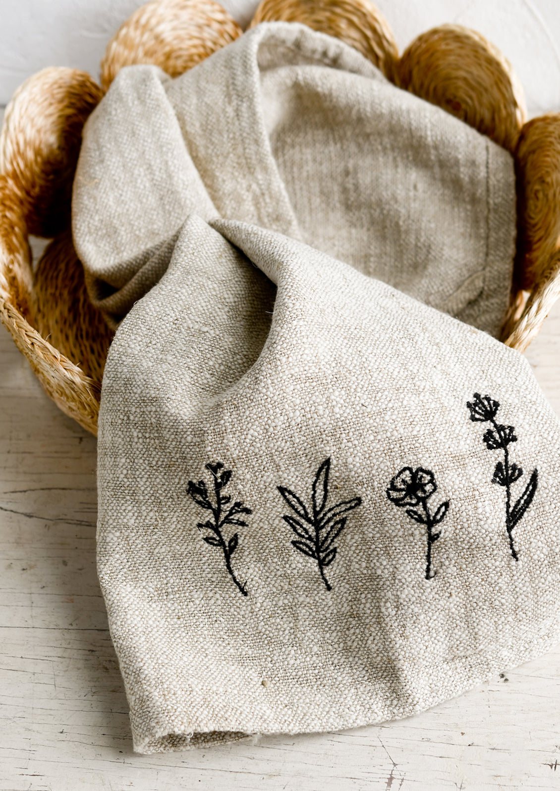 Whimsical Embroidered Tea Towel
